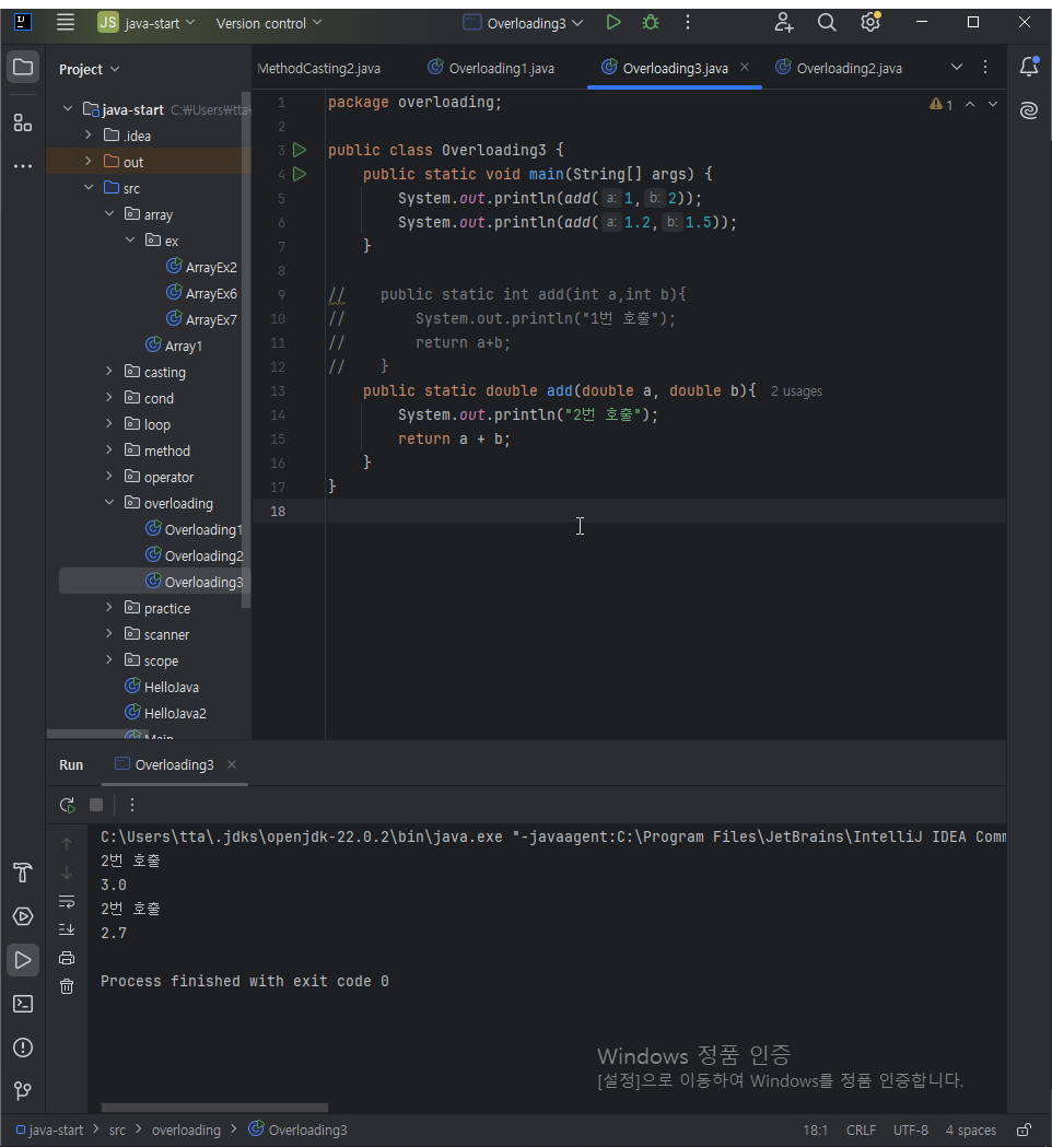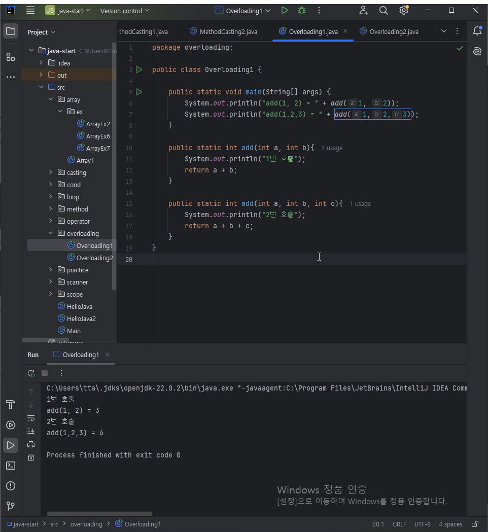 따라서 다음과 같이 이름이 같고, 매개변수가 다른 메서드를 정의할 수 있다.