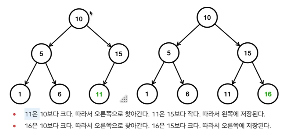 그리고 작은 값은 왼쪽에 큰 값은 오른쪽에 저장한다.